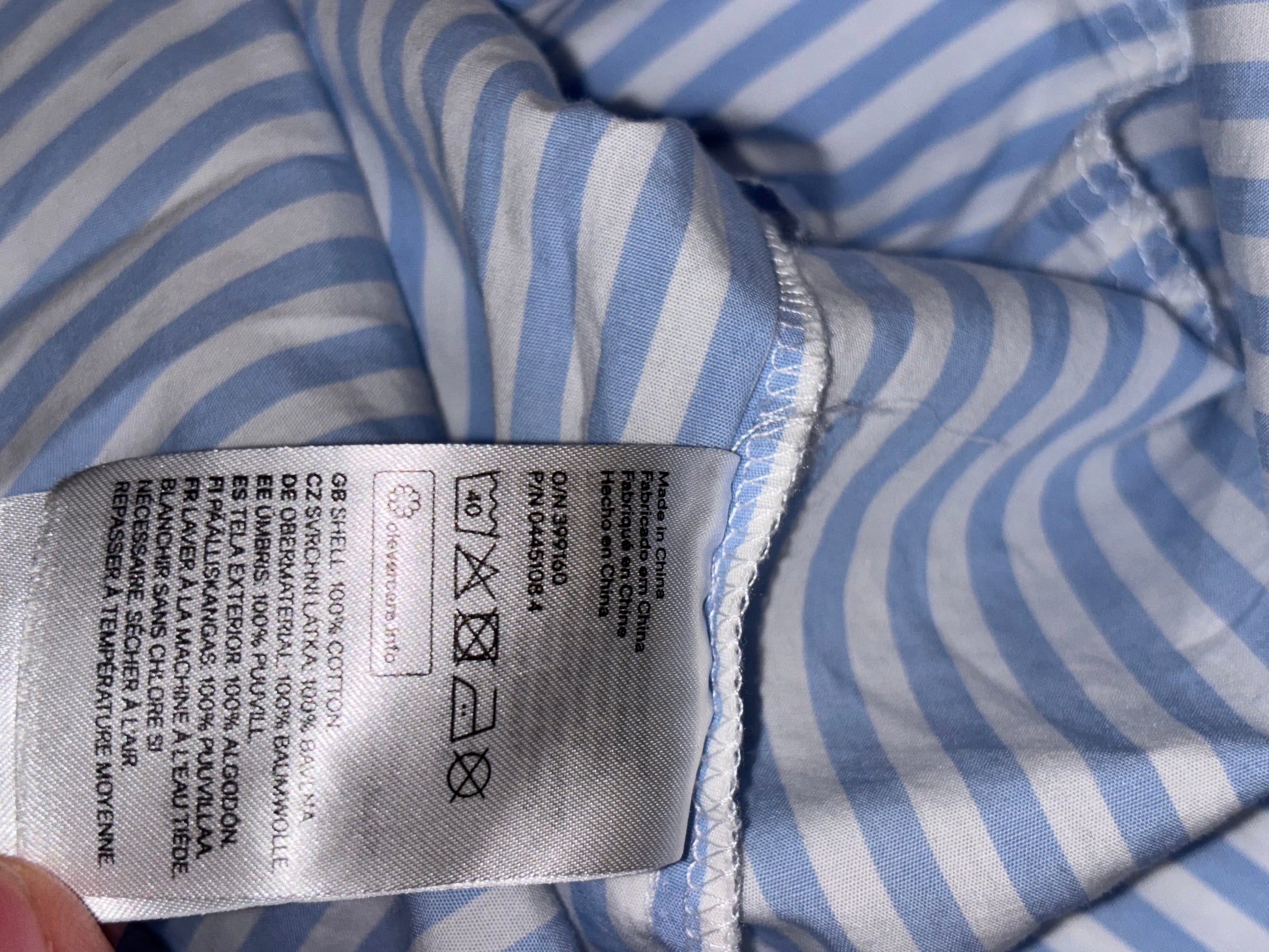 Color: Blue & white vertical stripes