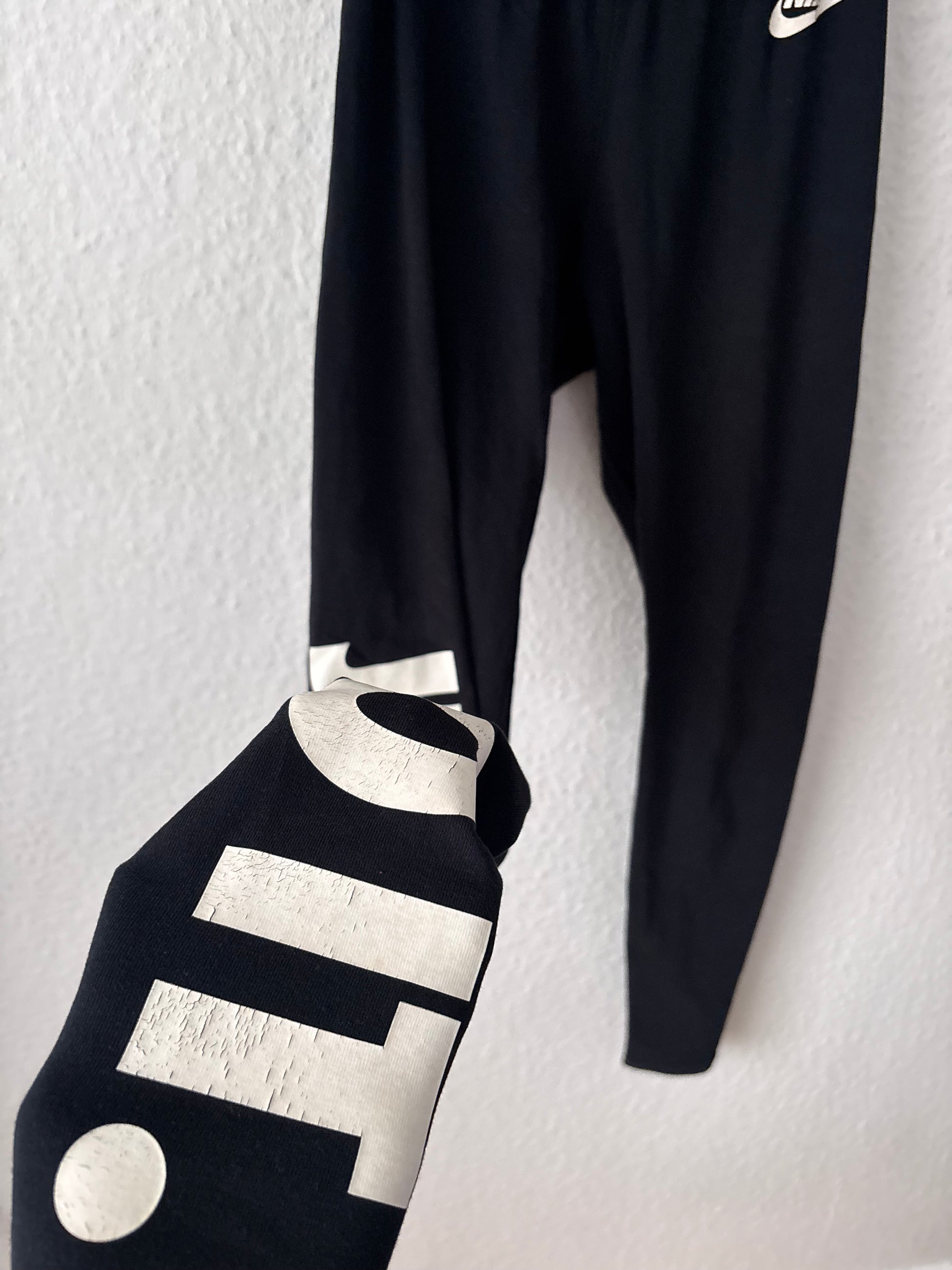 Type: Black leggings with large white print